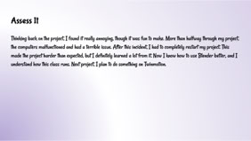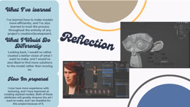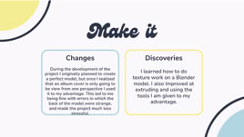Throughout the process, Lucas developed critical problem-solving skills, learning to troubleshoot issues independently using tutorials and teacher feedback. He refined his texturing and extrusion techniques, gaining a deeper understanding of how to efficiently bring a creative vision to life. This project not only strengthened his technical skills but also reinforced the importance of trusting the process and adapting to challenges in digital art.